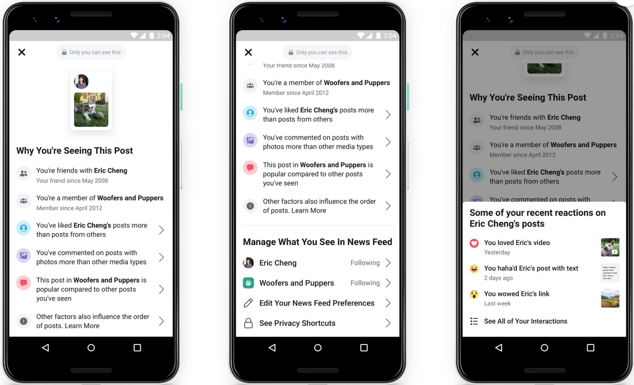 The feature will work like the Why am I seeing this ad feature. The user will understand why they see a post on the feed.