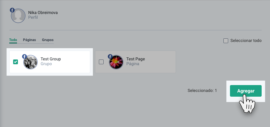 Para realizar publicaciones, usted necesita tener los mismos derechos de un grupo. Si los derechos son cambiados para un perfil de Facebook, pueden ocurrir errores de publicación. Si una publicación no fue realizada en un grupo, compruebe qué derechos se hayan otorgado al usuario de Facebook.