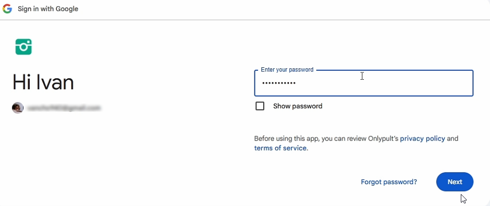 - Enter the password and click “Next”.