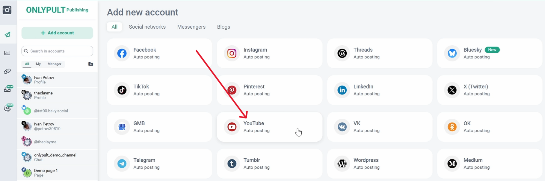 We have prepared a short video that shows step by step how to properly connect a Youtube account to Onlypult.