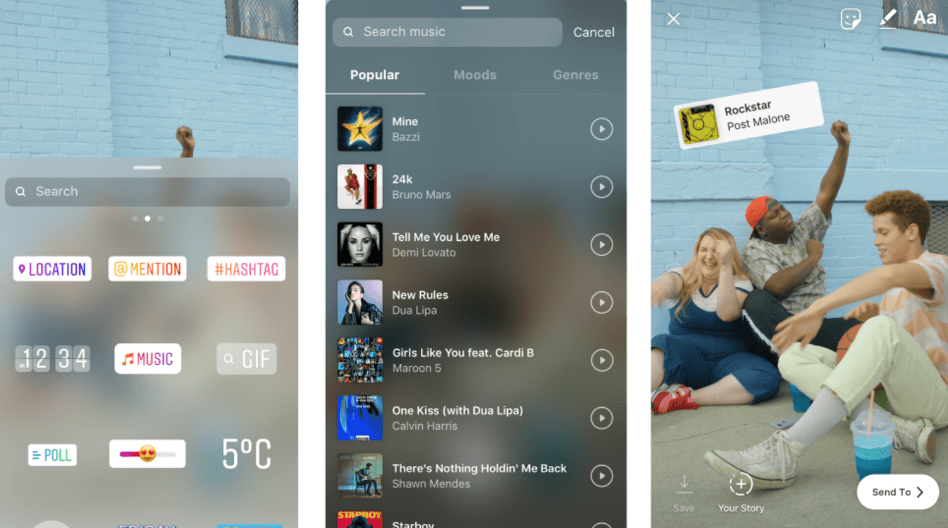 Более 400 миллионов людей по всему миру каждый день постят Истории — теперь это можно делать с музыкой. Добавьте стикер Music и выберите нужный трек из огромной библиотеки, когда История уже готова, или до того, как начнете снимать видео, — свайп вправо в режиме камеры в приложении откроет новое меню.