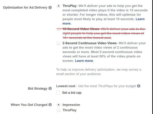 Со 2 мая 2019 года ThruPlay используется по умолчанию для оптимизации видеорекламы и биллинга.