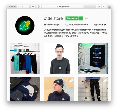 Представьте, что инстаграм — это фотодневник вашего бренда. Забудьте на время о продвижении и продажах. Публикуйте всё, что вам кажется интересным: офис, клиентов и то, как они используют продукты. Лучшие аккаунты в инстаграме получаются у компаний, где их ведением занимается сотрудник-энтузиаст.