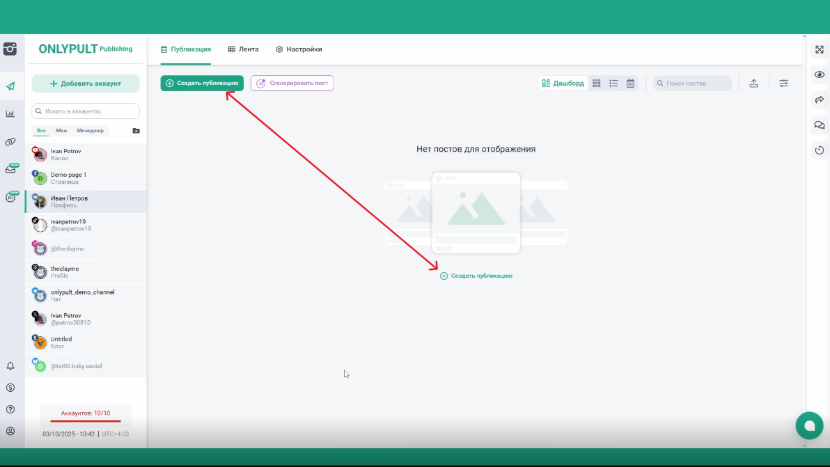 - Перейдите в раздел “Публикация”, нажмите “Создать публикацию”.