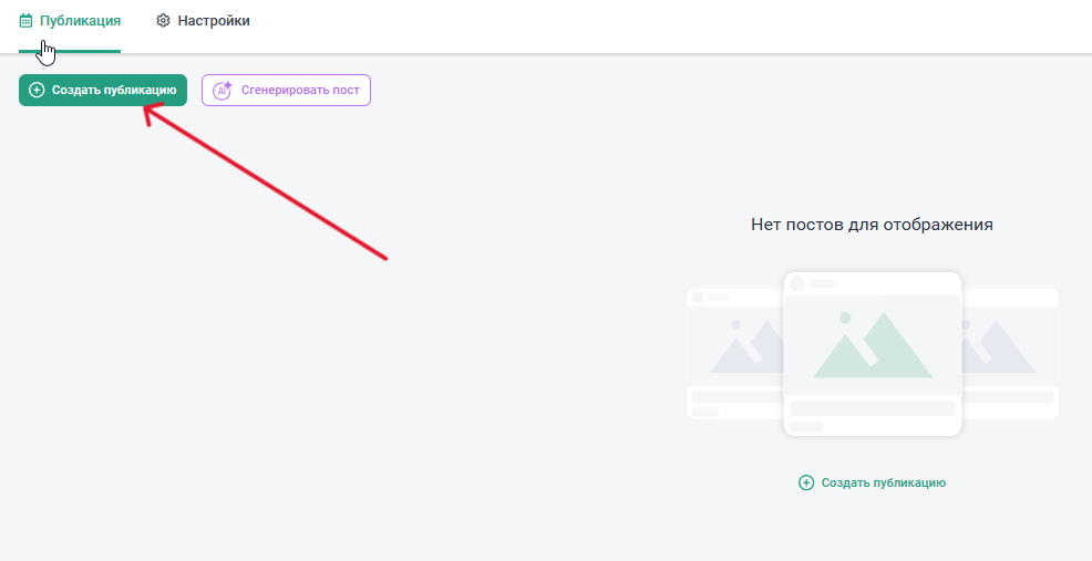 - Находясь в разеделе “Публикация” нажмите “Создать публикацию”.