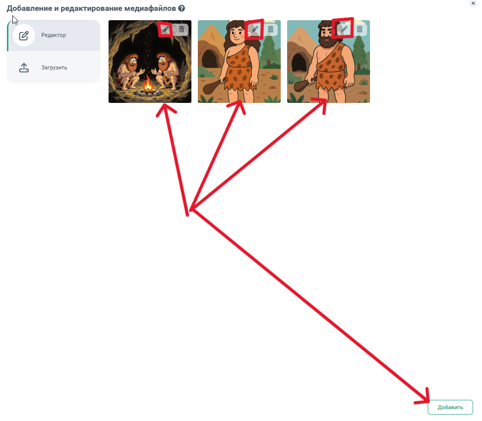 - Добавьте несколько фото в один пост, после загрузки он становится постом-галереей. Также вы можете отредактировать порядок медиа-файлов, отредактировать каждое изображение отдельно в редакторе. В случае создания карусели в Инстаграм, вы также можете отметить на каждом изображении какого-либо пользователя. Когда будет всё готово нажмите “Добавить”.