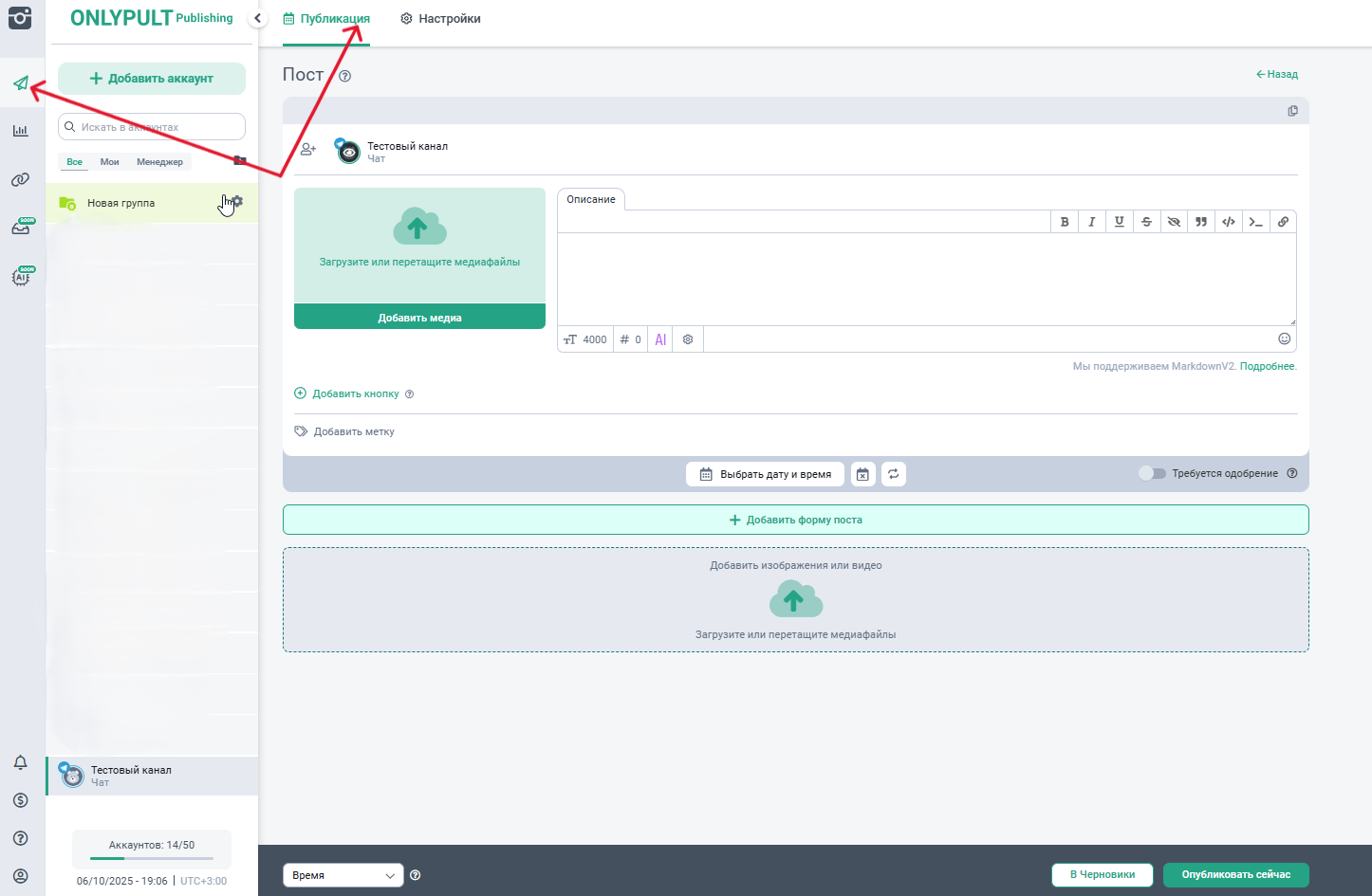 Нажмите на “Добавить пост” – откроется единая форма публикации с формой одиночного поста.