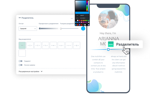 Добавляйте разделители, чтобы сделать свою страницу легкой для восприятия. Выбирайте вид разделителя, его толщину, размер отступа, цвет и прозрачность.