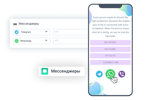 Взаимодействуйте со своей аудиторией без лишних усилий. Добавляйте умные ссылки на различные мессенджеры и мгновенно отвечайте на вопросы пользователей с помощью привычного для них способа.