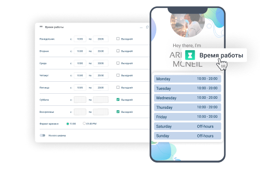 Добавьте информацию о режиме работы вашей компании и донесите до своих пользователей актуальный график для обращений в рабочие и выходные дни.
