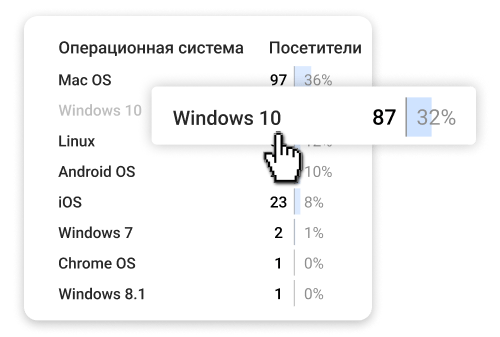 Расскажем, на каких устройствах и языках открывают вашу страницу. Это поможет вам выстроить маркетинговую стратегию.